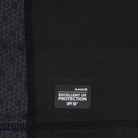 تی شرت آستین کوتاه مقاوم در برابر اشعه ماوراء بنفش برای محافظت در برابر آفتاب، حتی در آب، و برای محدود کردن تحریک در هنگام تماس با تخته. برش و بند کشی نصب شده برای پایداری در امواج.